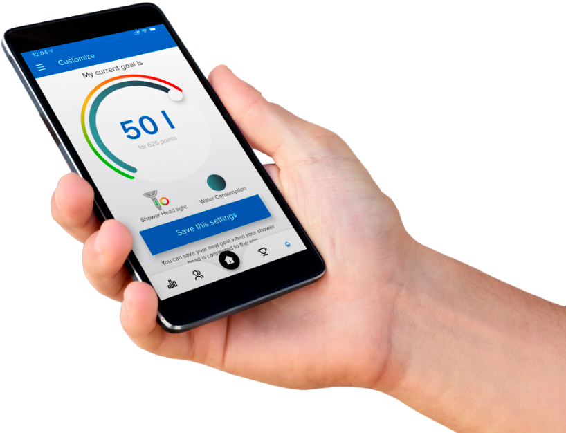 Verbinden Sie die Bluetooth-fähige Handbrause mit Ihrer Digital Hand Shower App, um Ziele für Ihren Wasserverbrauch festzulegen, Daten über Ihren Langzeitverbrauch zu erhalten und Wasserspartipps zu bekommen.